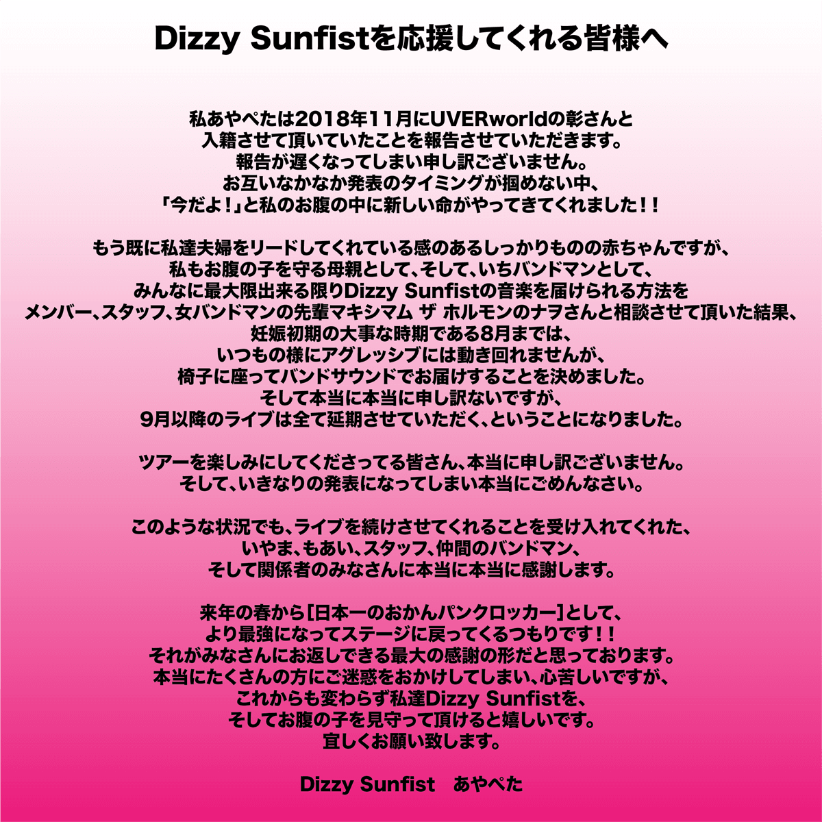 Dizzy Sunfistから大切なお知らせ