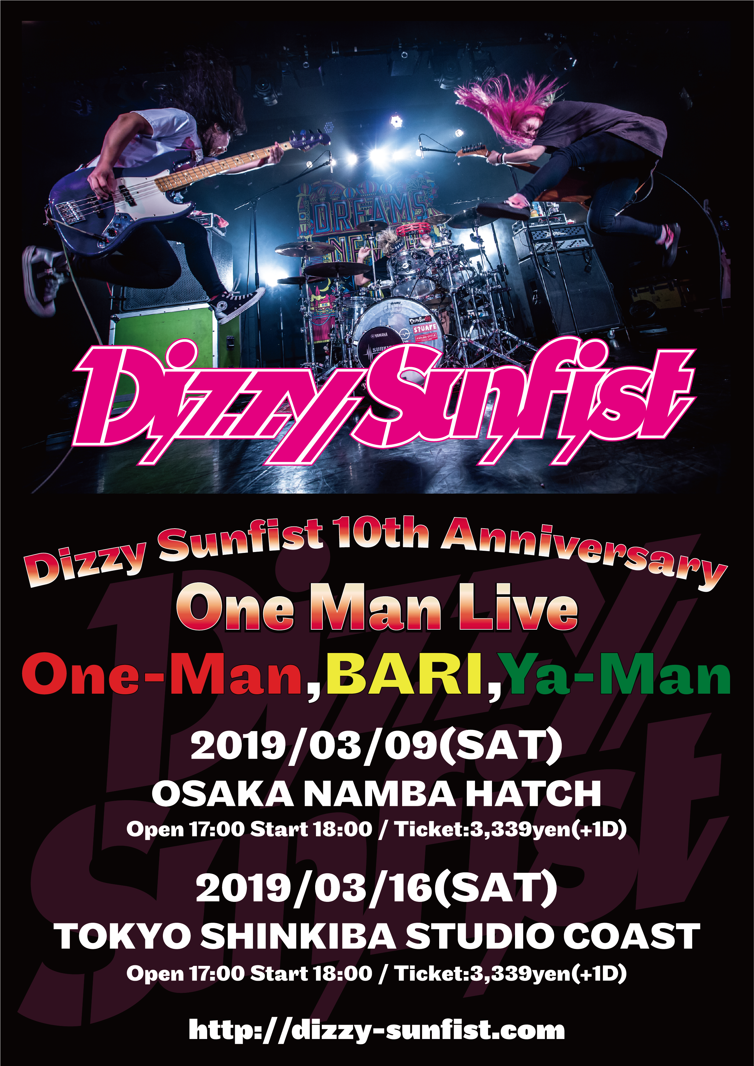 Dizzy Sunfist 10th Anniversary One Man Live 『One-Man,BARI,Ya-Man』東阪で開催決定!