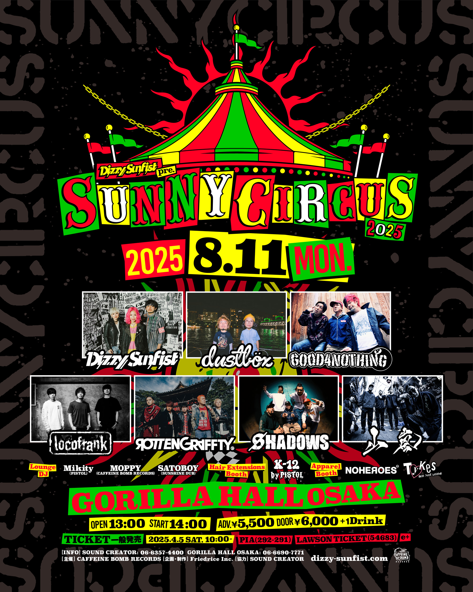 Dizzy Sunfist pre. “SUNNY CIRCUS 2025”情報!!タイムテーブル解禁!