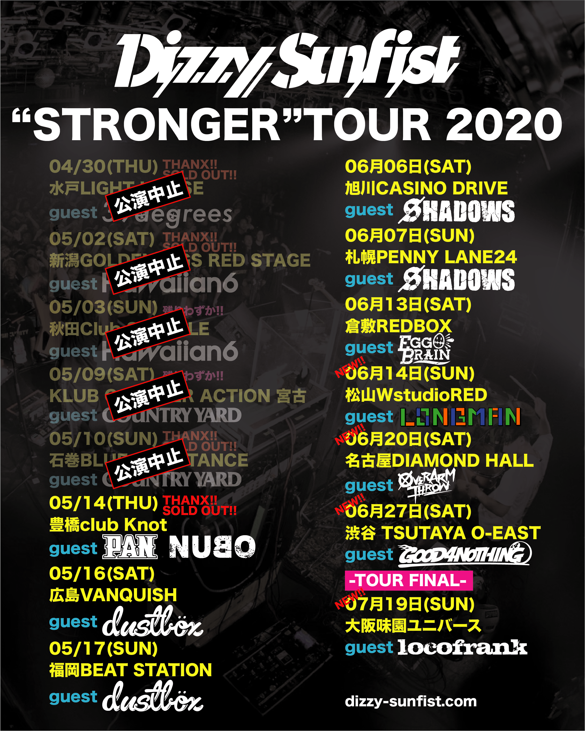 Dizzy Sunfist “STRONGER” TOUR 2020ゲスト最終発表!!