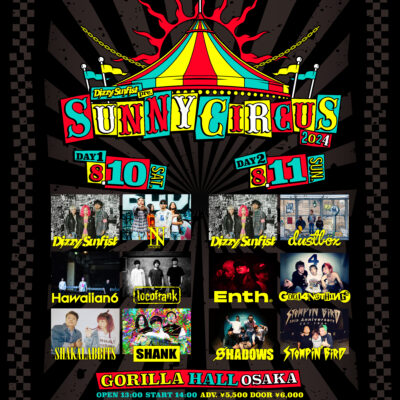 SUNNY CIRCUS 2023 in OSAKA 2023年8月11日 (金祝) GORILLA HALL OSAKA OPEN13:00/STRAT14:00 前売り5,500 ぴあ Pコード:242-755 ロー…